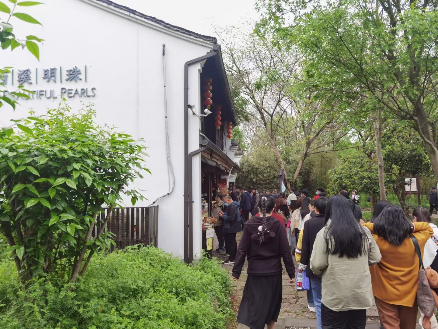 游览完湿地,大家又坐上大巴,来到河坊街。